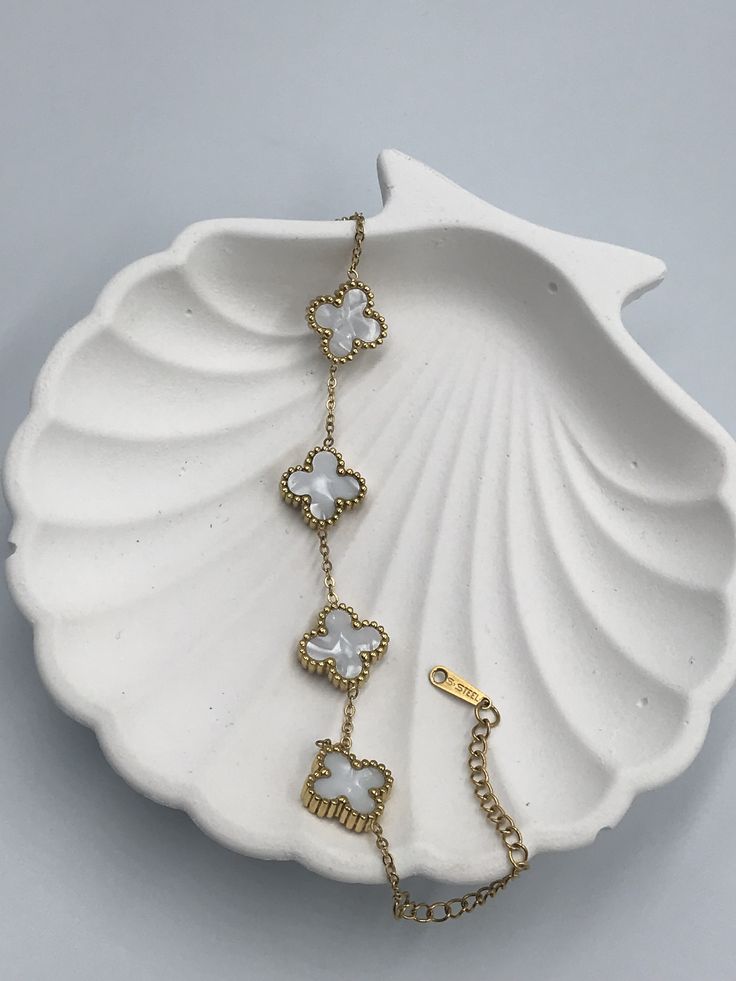 Add a touch of timeless charm to your jewelry collection with this elegant clover flower bracelet. Featuring delicately crafted four-petal floral motifs with intricate detailing and a radiant gold-plated finish, this piece symbolizes luck, beauty, and elegance. Lightweight and versatile, it’s perfect for everyday wear or special occasions, making it a thoughtful gift for someone special or a chic accessory for yourself.