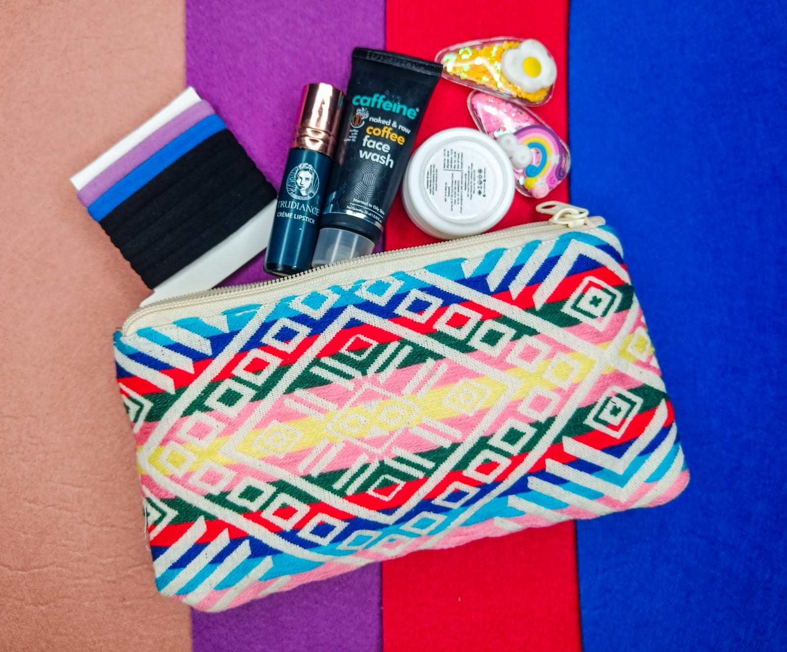 Beautiful handmade pouch for your everyday essentials. Extremely light weight with ample storage.