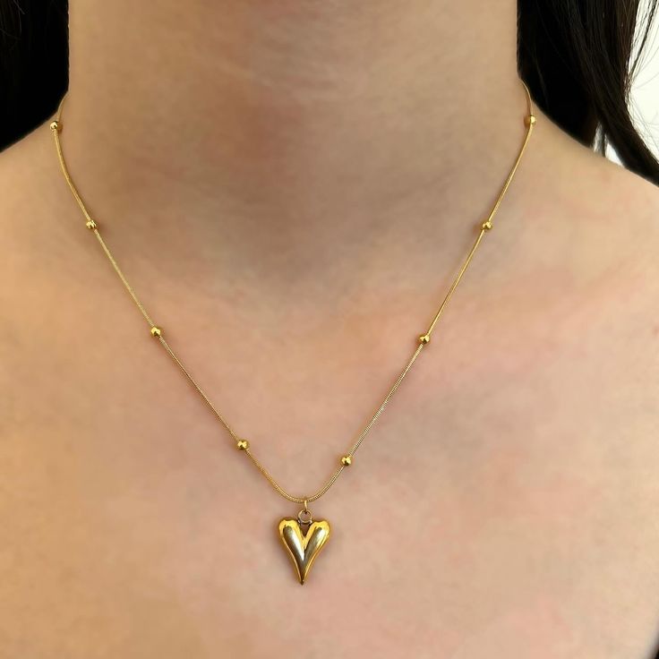 Radiate elegance and charm with this delicate gold-toned necklace, featuring a double-layered chain adorned with dainty beads and a bold heart-shaped pendant. Its versatile design makes it perfect for layering or wearing as a statement piece on its own. Whether styled casually or paired with evening wear, this necklace adds a touch of romance and sophistication to any look. A timeless gift of love and style.