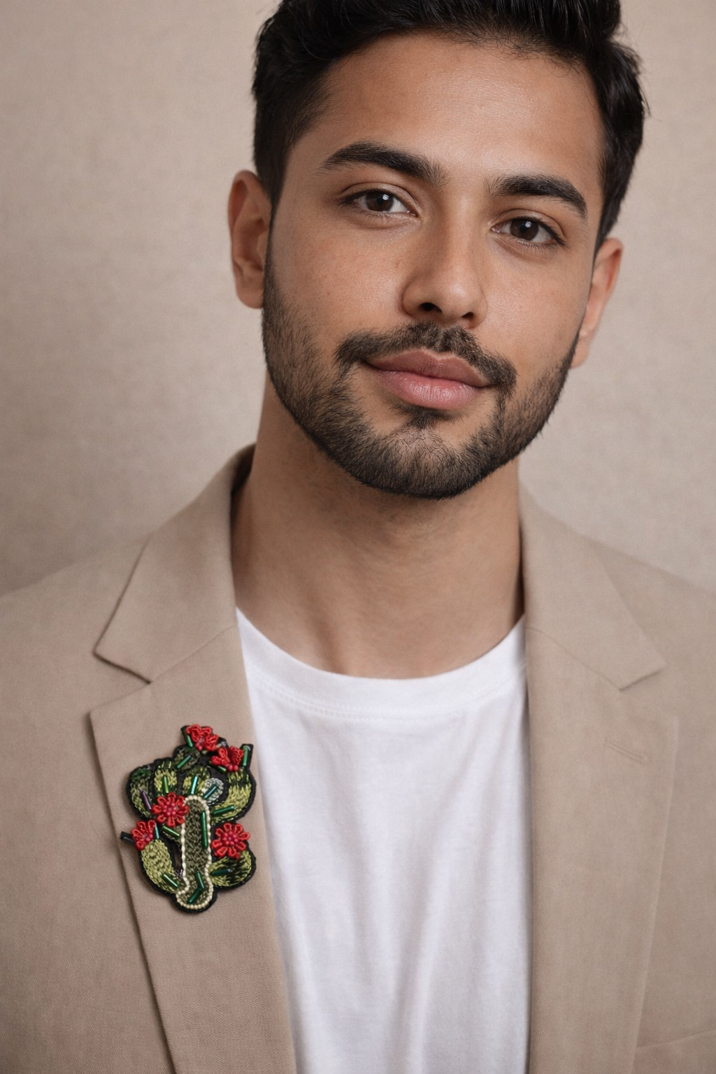 Add a touch of playful elegance to your outfit with this handmade cactus embroidered brooch, beautifully detailed with rich green threadwork, delicate beading, and vibrant red floral accents. Designed as a statement lapel pin, this brooch blends botanical charm with artisanal craftsmanship.