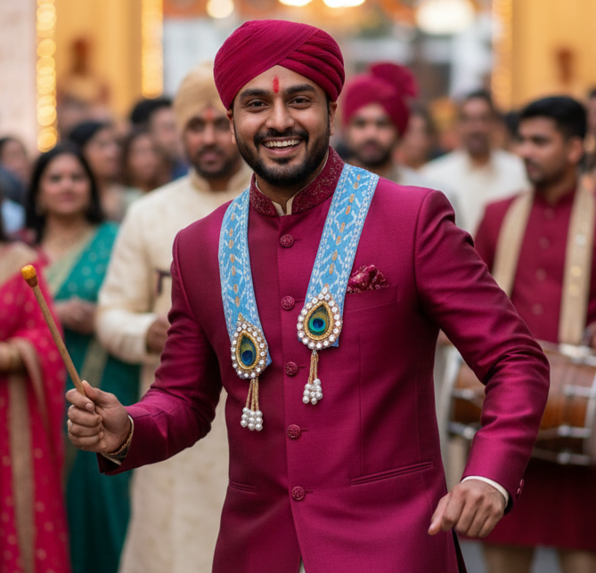 Perfect for wedding ceremonies, Haldi, Mehndi, and guest welcomes, this unique accessory adds sophistication and uniformity to your event staff or family look. Lightweight, stylish, and customizable, it’s an innovative addition to your wedding essentials.