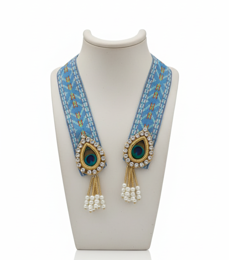 Peacock Feather Patka with Pearl Tassels – Premium Wedding Guest Welcome Accessory