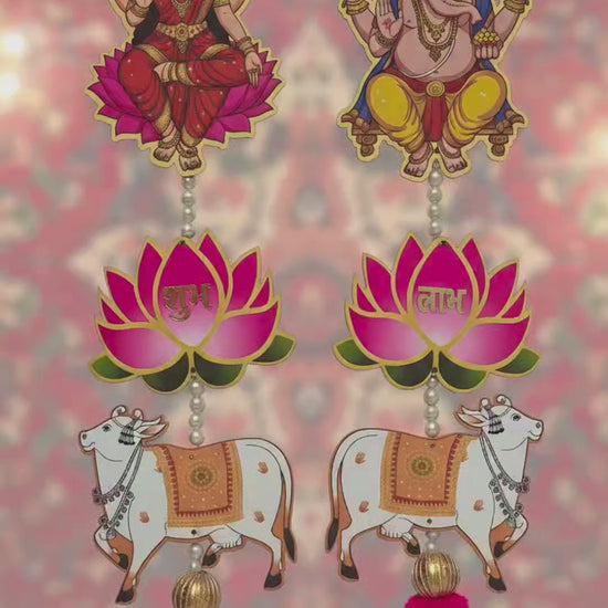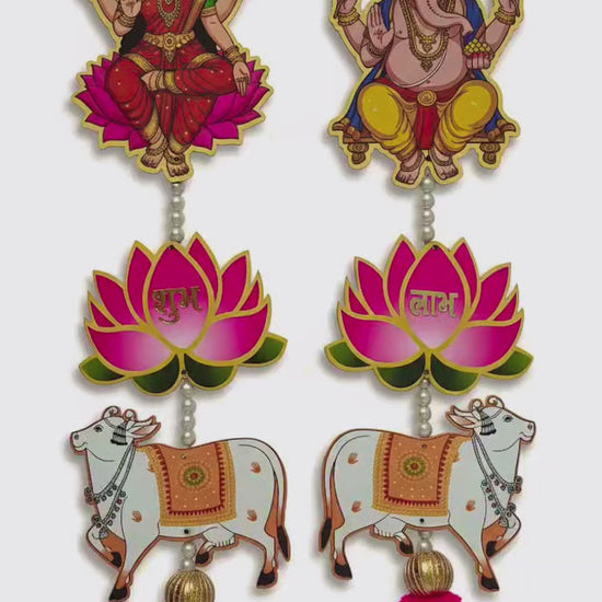 Shubh Labh decoration, Diwali wall hanging, festival toran, auspicious symbols, pooja room décor, home entrance decoration